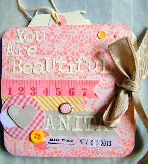 Sto lavorando da settimane a questo mini album per la cucciola di una mia amica. Proprio ieri la dolce Anita è nata e così ho potuto completare con nome e data la copertina. La struttura è quella che Sandra Omarini ha proposto al meeting Piemonte+VdA di settembre. Lo trovo fantastico, veloce e d'effetto, una gran soddisfazione realizzarlo!